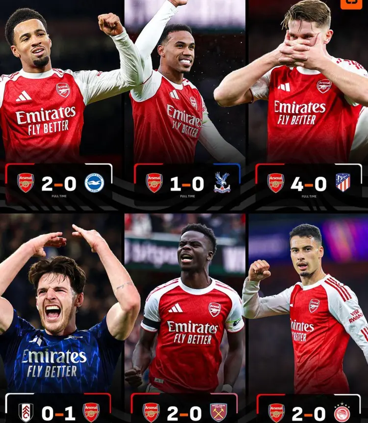 当利物浦、曼城、曼联均出现一定问题的时候,阿尔特塔的阿森纳则在疯狂赢球。10月30日凌晨,联赛杯第4轮,阿森纳主场2-0击败布莱顿,豪取各项赛事8连胜,不可阻挡。