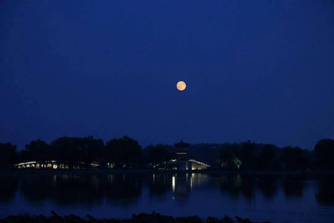2025年10月7日,北京颐和园,古建筑与满月同框。