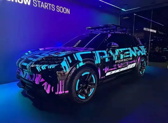 从此前曝光的伪装实车来看,新车已在慕尼黑车展完成首秀。前脸部分采用保时捷纯电家族标志性的灯组造型,四点式日行灯与主灯一体化设计,形成品牌电动车型新的视觉符号。由于取消了传统进气格栅,前机盖更显紧凑且线条饱满,前唇造型张力十足,进一步强化运动气息。