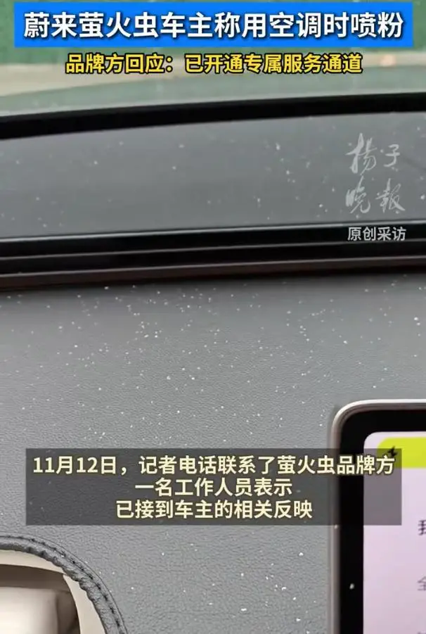 但也有蔚来萤火虫车主提到车内外温差近 15 度时打开暖风空调,逆光下能看到仪表台反射星星点点的粉末,后续还出现了类似头皮屑大小的碎片,碾碎后呈粉末状。品牌方也明确表示,喷粉是加热器表面产生的微量氧化铝导致,而加热器正是空调制热功能的核心部件之一。