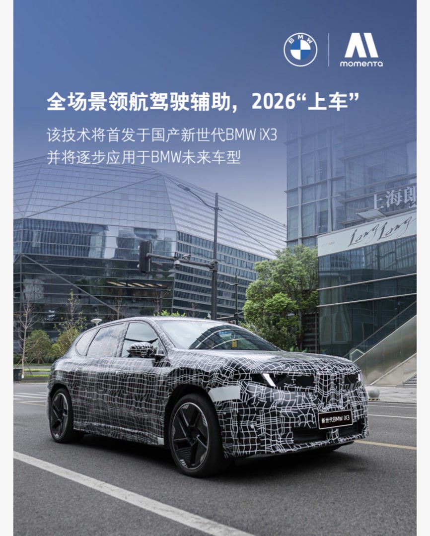 据悉,未来Momenta智能驾驶辅助系统方案将应用于多款车型。其中,首发搭载该方案的国产新世代BMW iX3预计于2026年正式投产,于同年全球首发并正式上市。