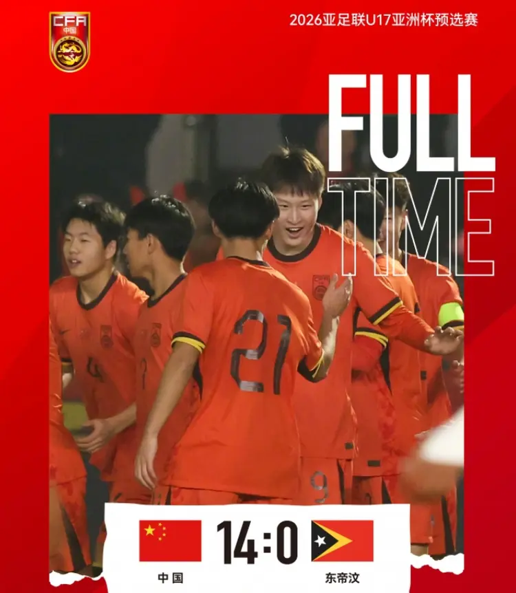 凭借帅惟浩、谢晋、赵松源的帽子戏法,以及张伯霖的梅开二度,万项、王贺毅、张旭尧的破门,最终14-0狂胜东帝汶,拿下两连胜积6分,同时依靠净胜球的优势力压孟加拉国,升至小组第一,晋级亚洲杯正赛的前景无限光明。