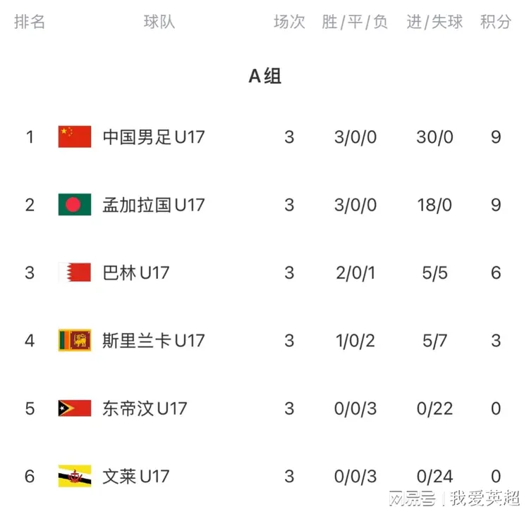 3轮战罢,U17国足与孟加拉国都是3连胜,U17国足打进30球0丢球。而孟加拉国则是打进18球0失球,U17国足领先孟加拉国12个净胜球。