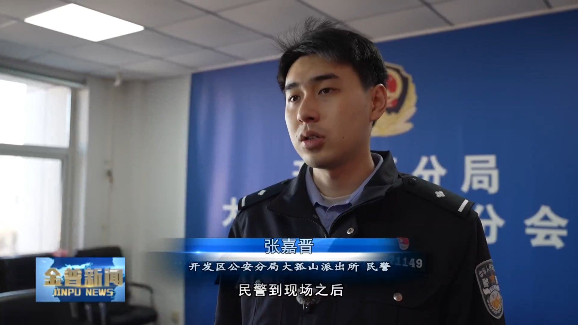 开发区公安分局大孤山派出所民警张嘉晋(后来我们出示当时的现场视频,以及报案人提供的视频,给这个嫌疑人看,最后经过我们的讯问,最后他也是交代了这段违法事实。)