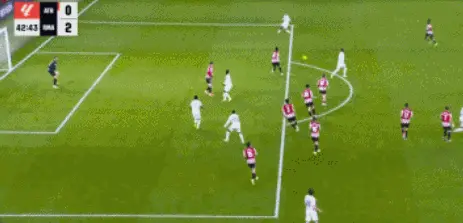 第42分钟,皇马2-0再下一城,这一次姆巴佩完成了助攻:贝林厄姆分到边路,阿诺德送出传中,姆巴佩门前头球摆渡,卡马文加轻松顶进,配合行云流水般。