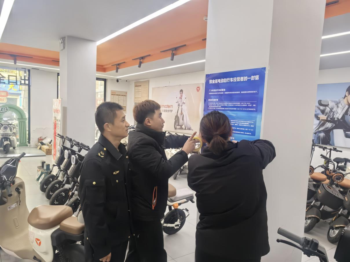 检查中重点检查经营单位是否具存在非法改装电动自行车违法行为,销售的产品是否持有有效的《中国国家强制性产品认证证书》,销售的产品上是否标注了强制性认证“CCC”标识,外包装是否有产品标签、标签信息是否齐全,是否标明了厂名、厂址、警示说明、是否附有中文说明、产品质量合格证、产品执行标准等信息。同时,执法人员向经营单位宣讲了相关法律法规,要求经营单位建立并落实产品质量安全主体责任的长效机制,结合自身实际,落实自查要求,制定包括进货查验、索证索票、建立台账、核对产品质量信息等内容的《工业产品质量安全风险管控清单》。