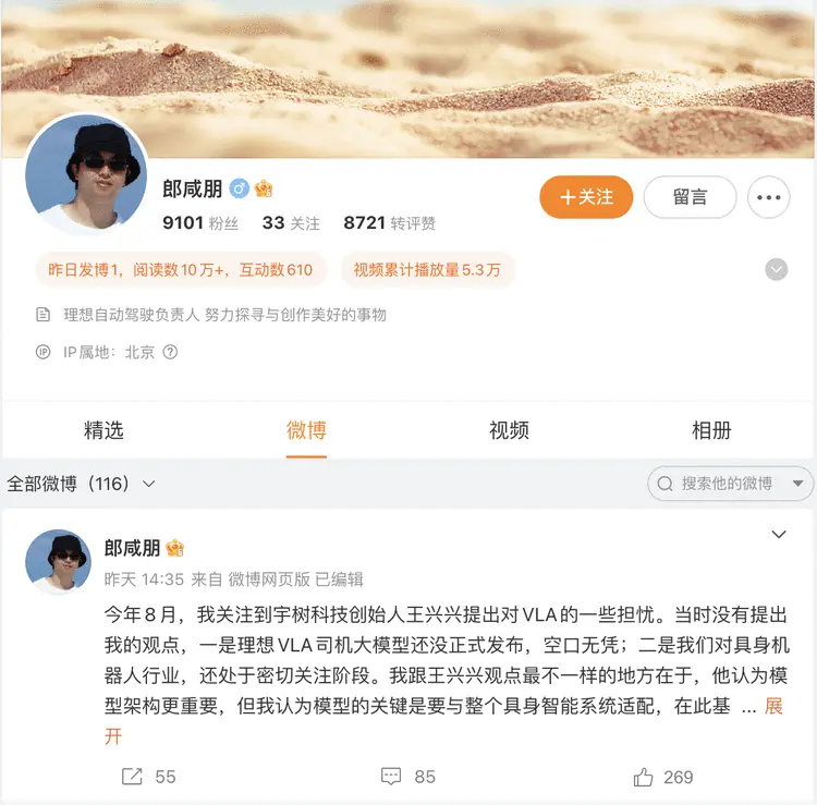 网易汽车12月11日报道,近日,理想汽车自动驾驶研发高级副总裁郎咸朋通过微博,就宇树科技创始人王兴兴此前提出的“VLA技术路线担忧”进行了回应。郎咸朋明确指出,VLA是理想认为最优的自动驾驶模型方案,而具身智能的关键在于整体系统能力。这一表述不仅回应了技术争议,也提供了理想对自动驾驶未来发展路径的清晰判断。