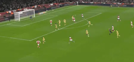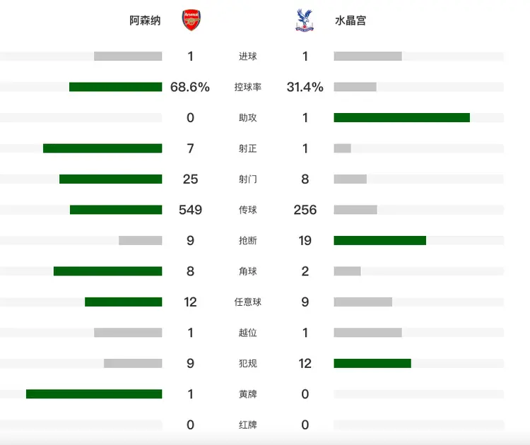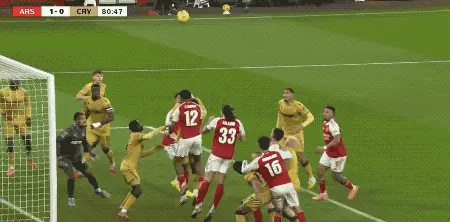 第23分钟,马丁内利再次送出妙传,热苏斯的头球以及马杜埃凯的补射,都被水晶宫门将奋力扑出。