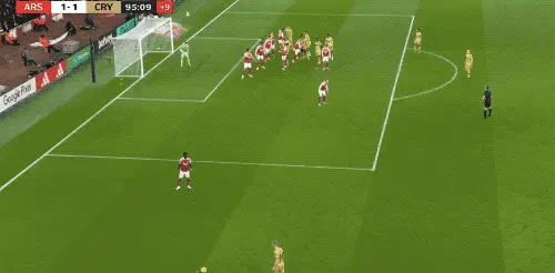 第80分钟,萨卡开出角球,水晶宫禁区内乱成一团,拉克鲁瓦自摆乌龙。