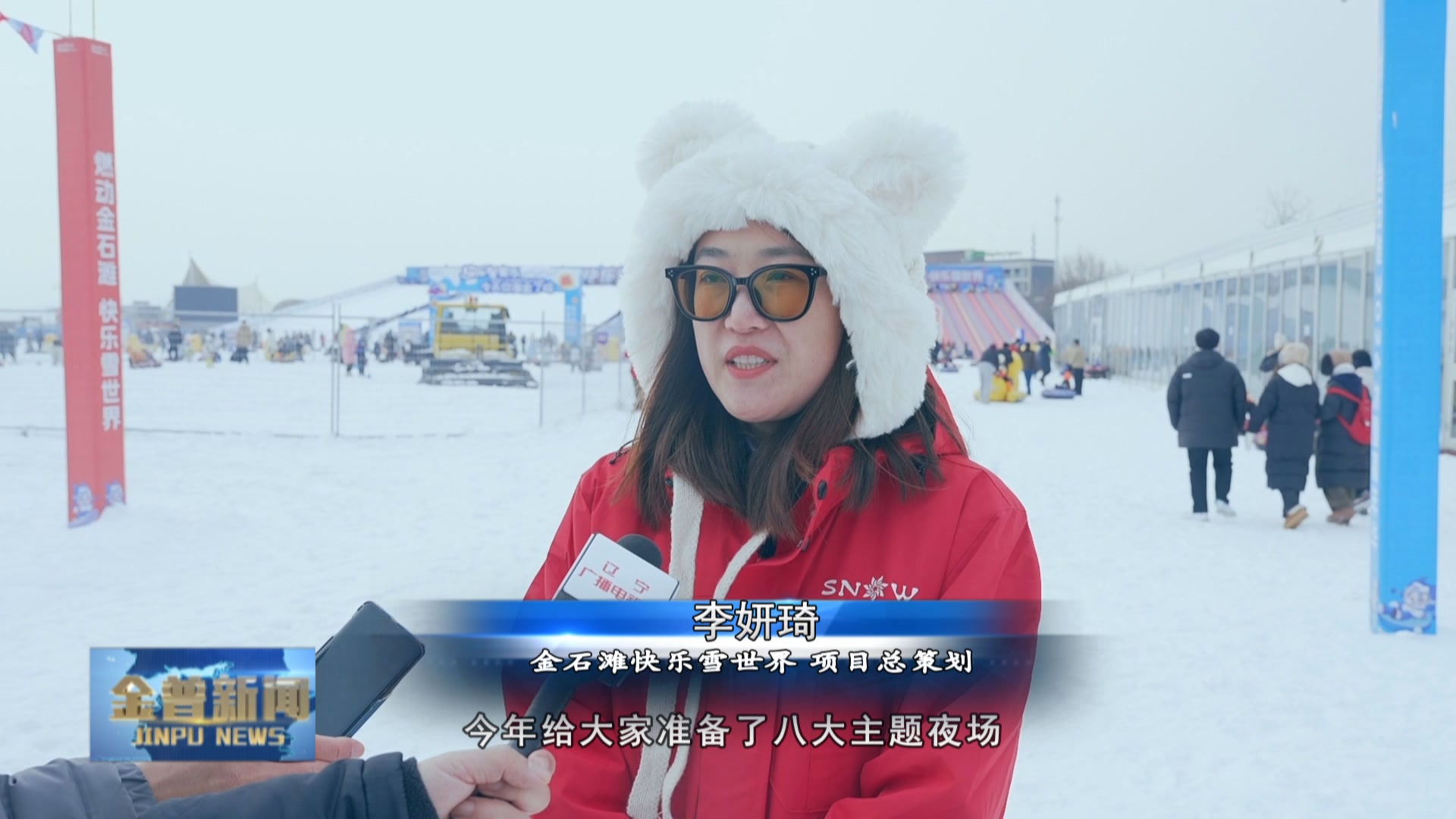 金石滩快乐雪世界项目总策划李妍琦(今年给大家准备了八大主题夜场,在我们的开园、元旦、寒假以及春节都有不同的主题夜场和烟花,可以让大家来进行游玩,我们今年的口号也是做到年年有不同,周周有花样,让所有游客都可以在大连的海边体验海边玩雪的快乐。)