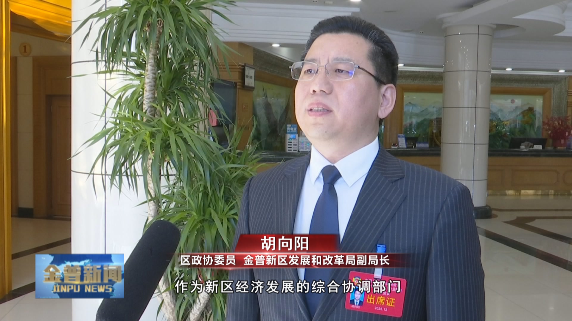 区政协委员金普新区发展和改革局副局长胡向阳(作为新区经济发展的综合协调部门,我们将坚决扛起责任,采取超常规举措,尽最大努力让报告中确定的260多个亿元以上项目早竣工、早投产。加强产业、投资等政策的协同发力,确保"十五五"开好局、起好步。)