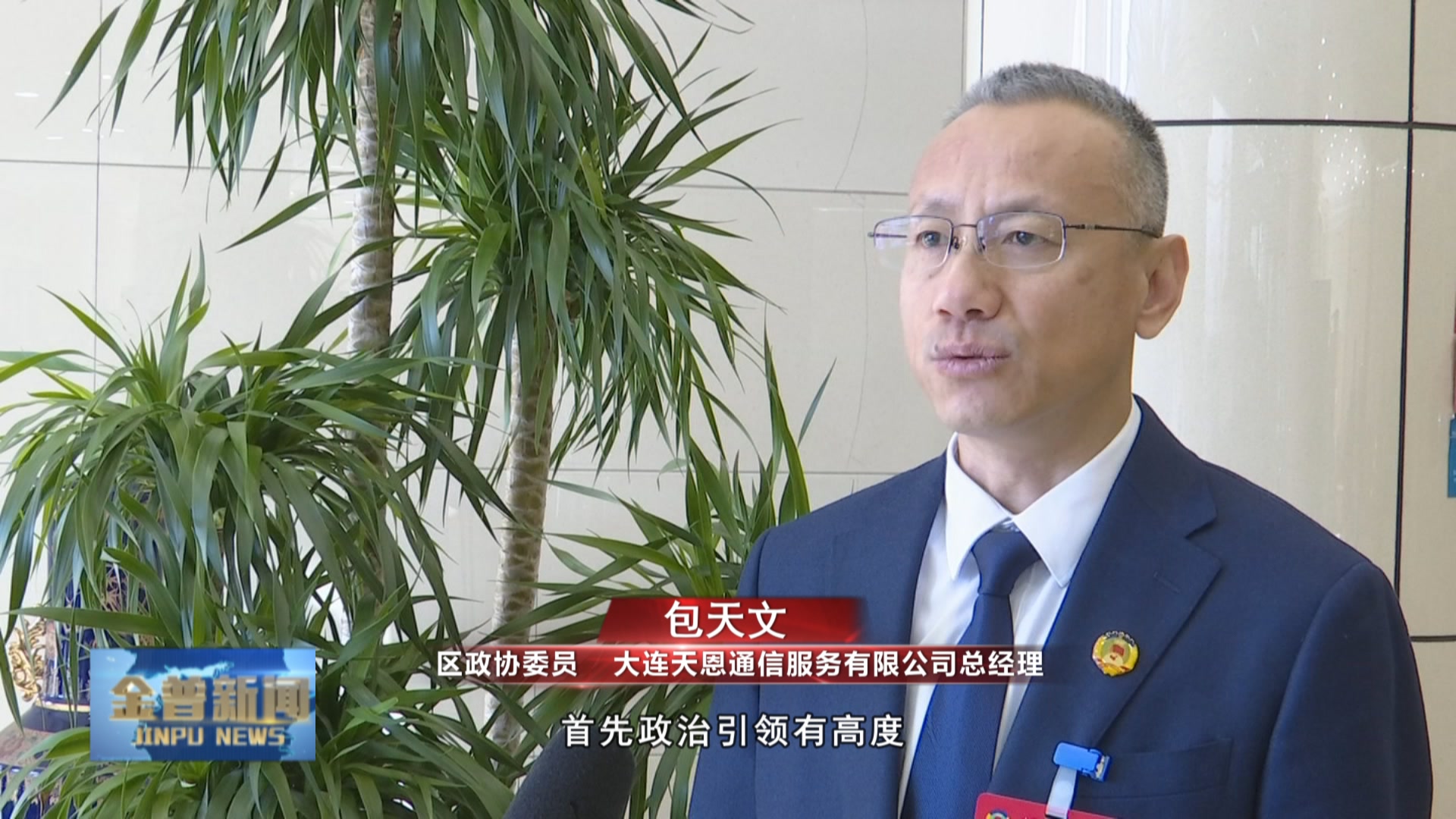 区政协委员大连天恩通信服务有限公司总经理包天文(首先政治引领有高度,报告牢牢把握正确政治方向。其次服务大局有力度,围绕新区经济高质量发展、营商环境优化、乡村全面振兴等中心工作,真正做到了"党委工作推进,政协履职跟进"。为民履职有温度,深入基层听民声、察民情、解民忧,让群众真切感受到了政协离自己很近、委员就在身边。)