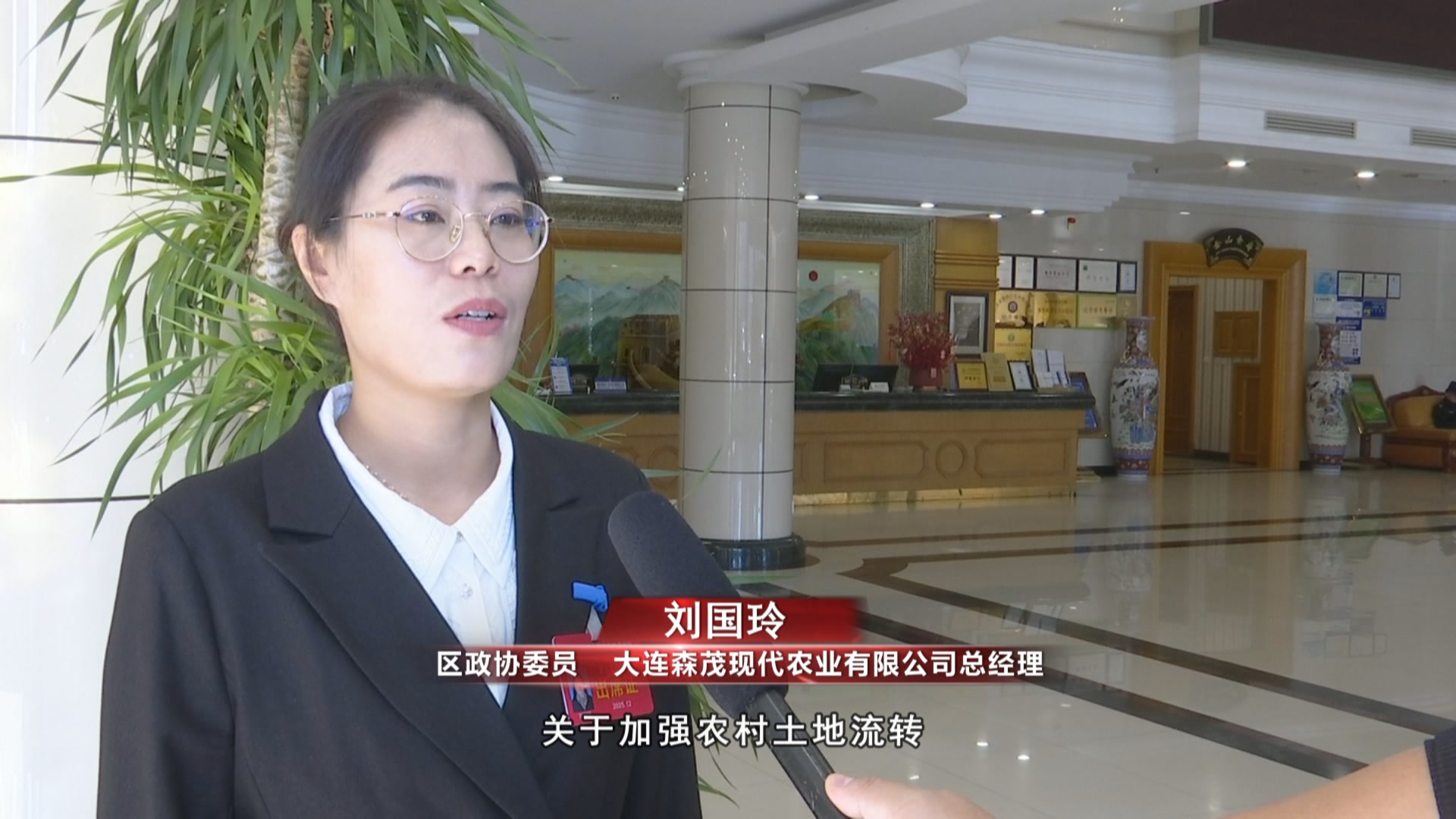 区政协委员大连森茂现代农业有限公司总经理刘国玲(我带来的提案是关于加强农村土地流转与集约利用的提案。希望通过这个提案能够解决农村土地流转瓶颈。)