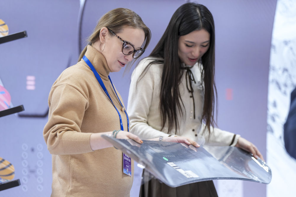 中国庞大的市场潜力和持续向好的创新环境,正吸引全球冰雪巨头从“卖产品给中国”转向“在中国研发生产”。滑雪装备品牌探锐在此次展会上展示了在中国研发的全碳系列滑雪板、滑雪鞋。该品牌参展商格列本科娃·叶卡捷琳娜说,中国单板滑雪运动的迅猛发展,让他们看到在中国发展的必然性。