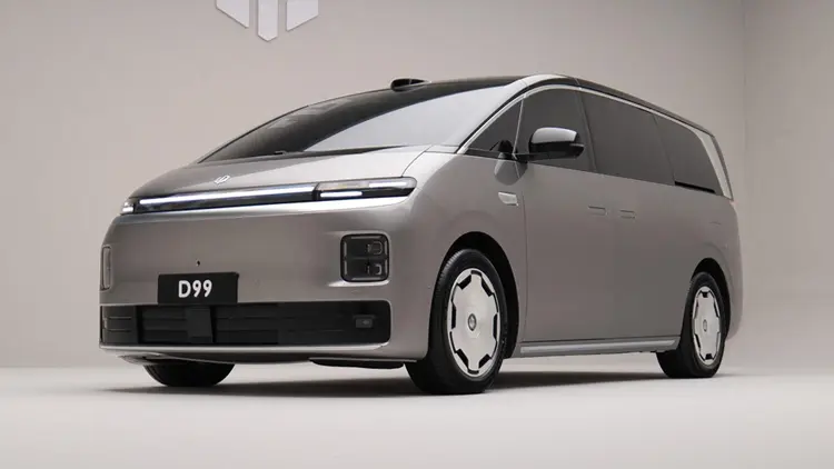 零跑在2025年年底发布的“压箱底巨型彩蛋”--这台旗舰大型MPV,D99。蜗牛车志已经进行了实车拍摄,整体观感是不是有点理想MEGA?它也做了高铁样式的设计,低车头+平整的车侧,旨在降低风阻。新车的车长超5.2米,车宽近2米,轴距超3.1米,整个尺寸可能就略小MEGA一些,但已经是标准的大型MPV规格。