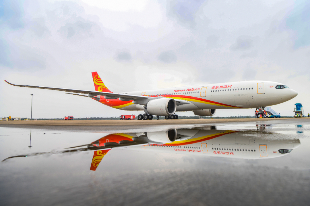 海南航空一架全新客机顺利降落在海口美兰国际机场。苏弼坤 摄