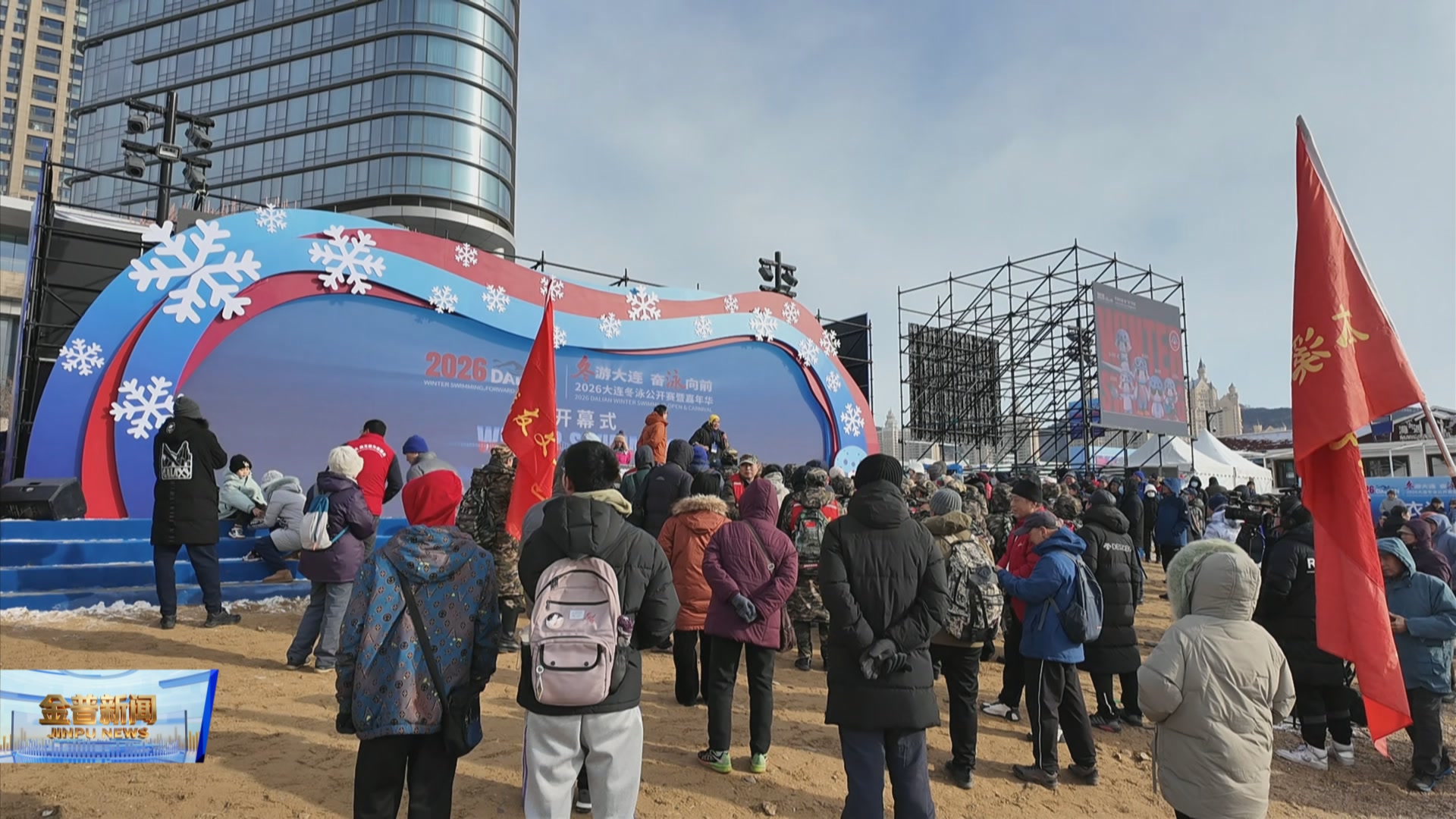 1月10日至11日,以“冬游大连,奋‘泳’向前”为主题的2026大连冬泳公开赛暨嘉年华在星海湾浴场火热启幕。本次活动由大连市文化和旅游局主办,金普新区文旅倾力助阵,将竞技赛事与地域非遗、美食体验深度融合,打造出一场别具特色的冬日文旅盛宴。