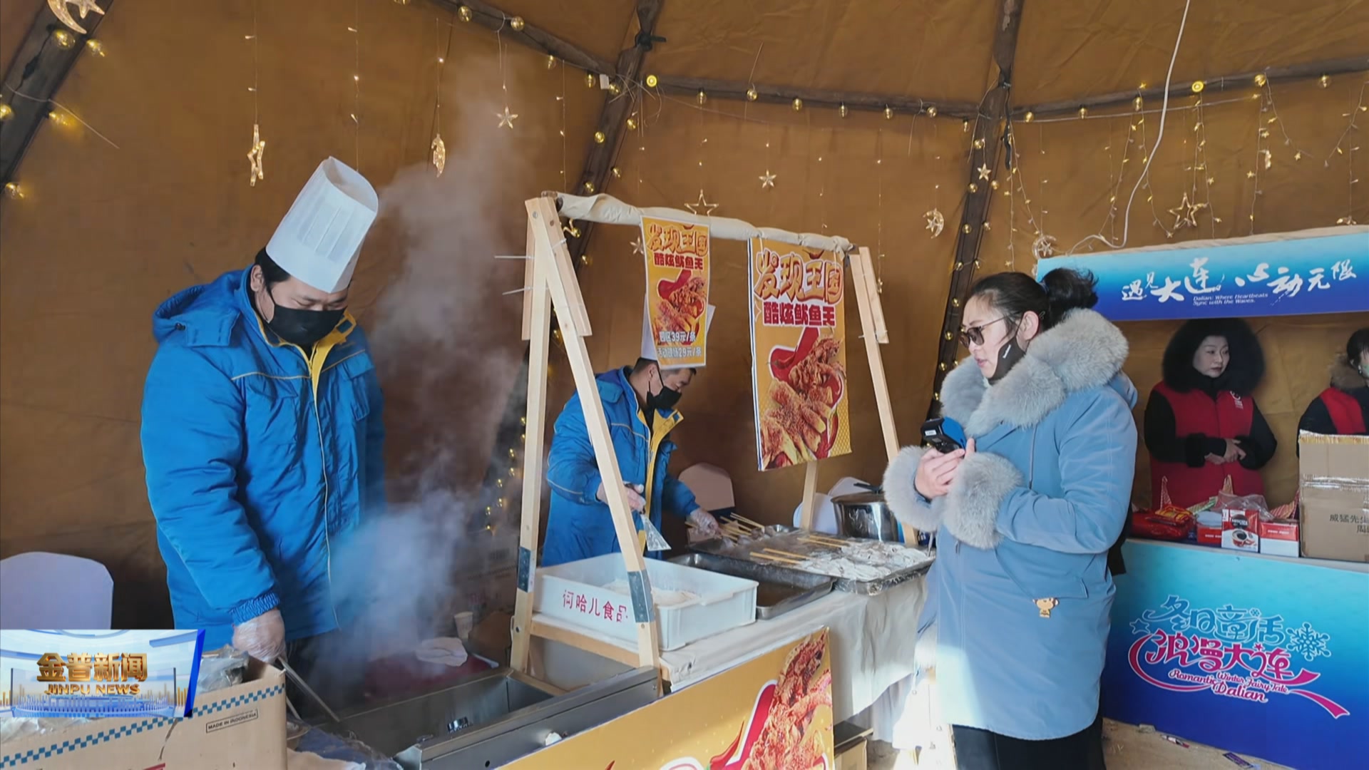 金普新区文旅携多款非遗美食惊艳亮相,除了滋滋作响、鲜辣过瘾的明星小吃酷炫鱿鱼王,承载金普记忆的金州老菜盐爆螺片、金州驴肉包更是圈粉无数。盐爆螺片火候精准、脆嫩清甜,金州驴肉包皮薄馅实、肉香浓郁,让游客在寒风中尽享舌尖美味。