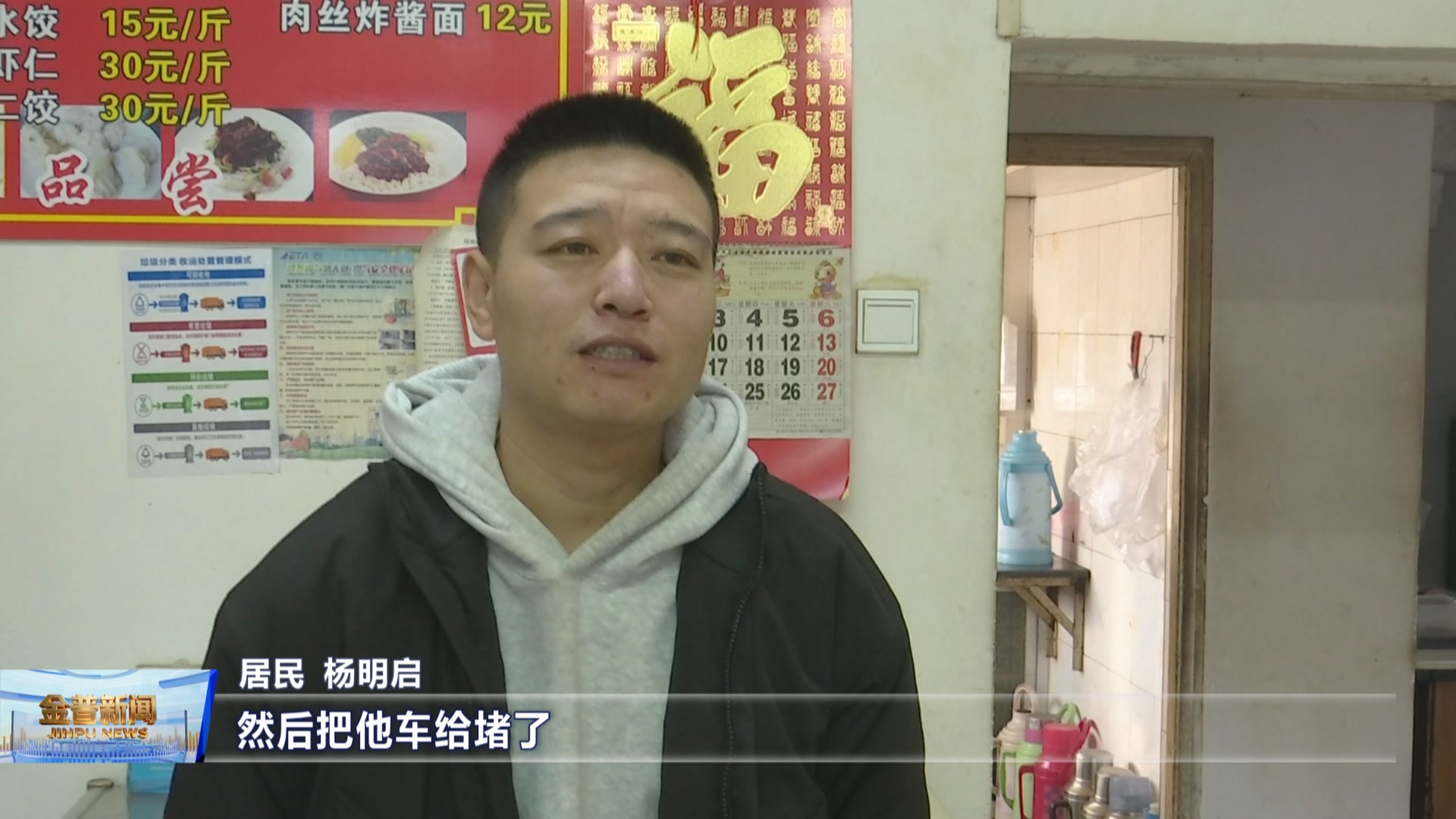居民杨明启(当时我火气确实挺大,然后把他车给堵了,多亏王警官过来跟我们沟通,我们确实服他,把这个事情解决了。)