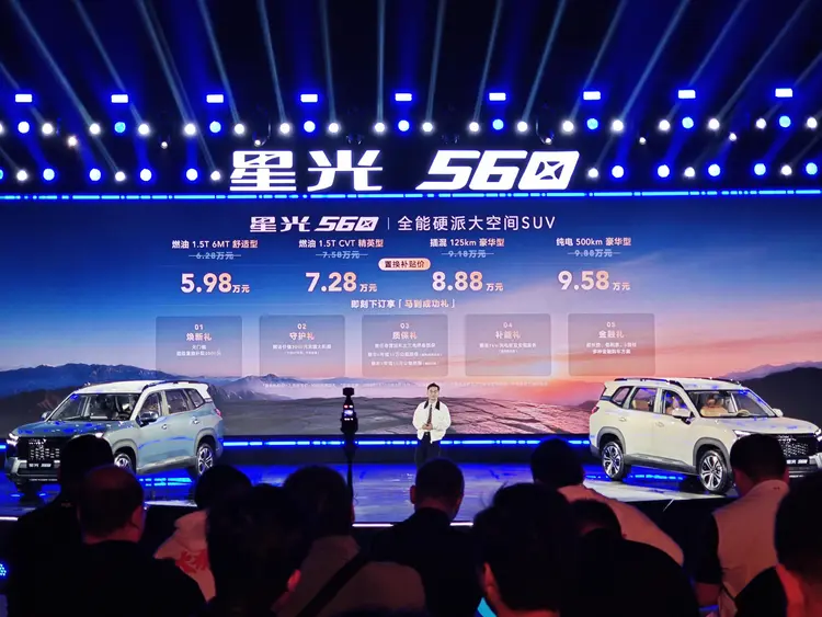 动力方面,星光560带来燃油、插电混动和纯电三种选择,覆盖不同用户的能源偏好与使用场景。