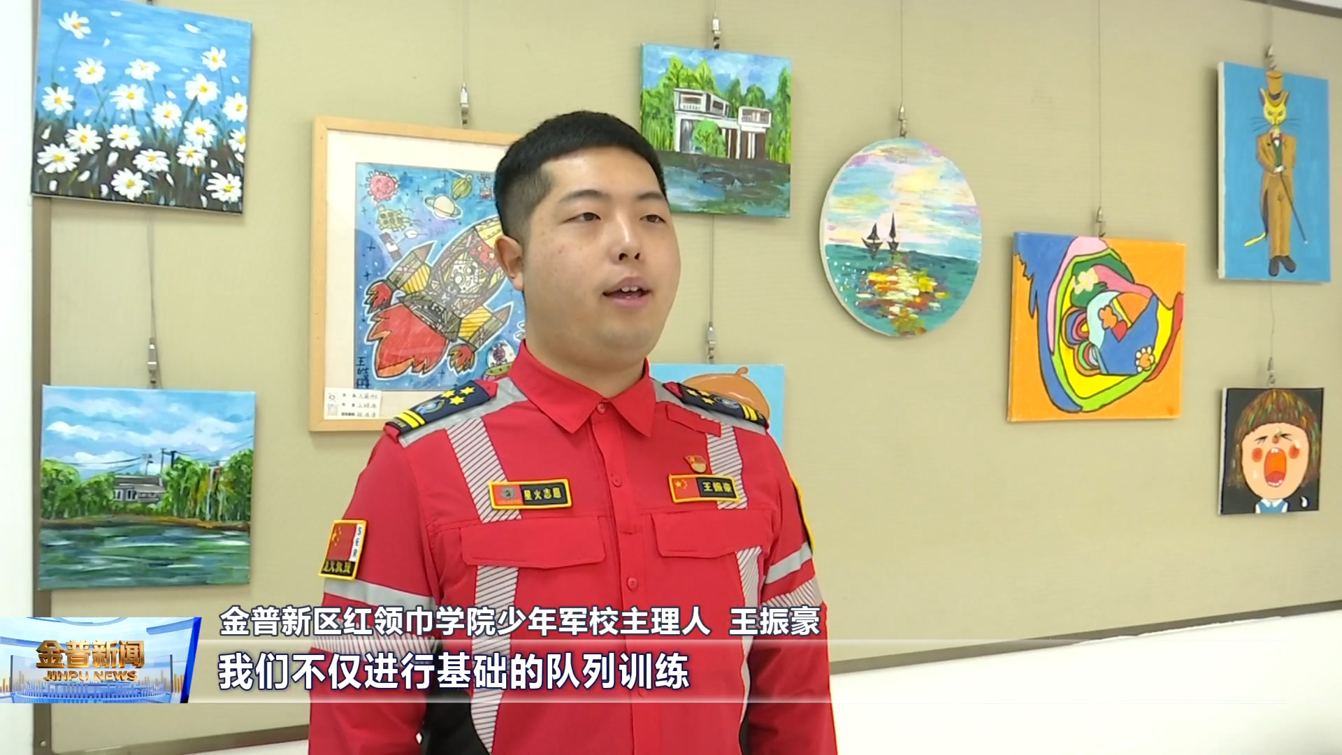 金普新区红领巾学院少年军校主理人王振豪(在少年军校的活动中,我们不仅进行基础的队列训练,更注重结合现代科技。比如带领孩子们进行无人机探索,了解国防知识。我们希望通过这种沉浸式的体验,在他们心中从小埋下爱国强军的种子,锤炼意志,筑牢家国情怀。)