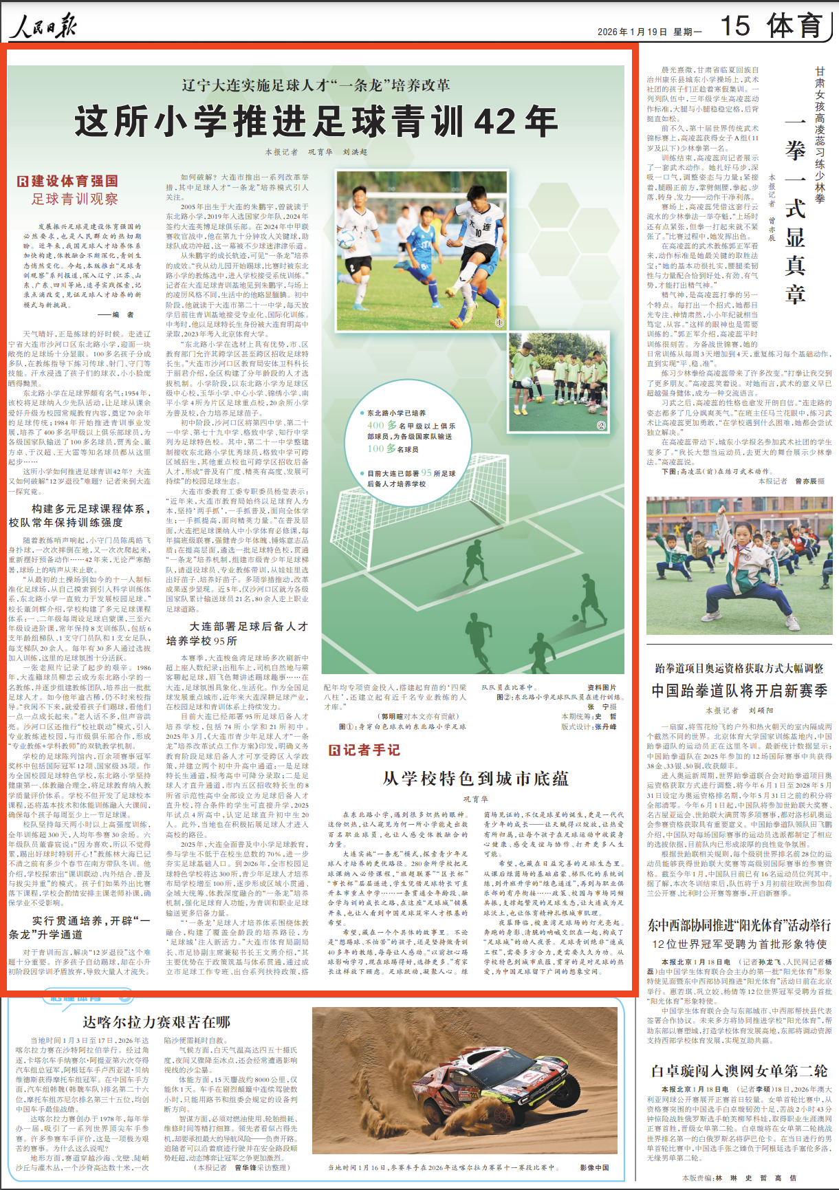 大连市委教育工委专职委员杨莹表示:“近年来,大连市教育局始终以足球育人为本,坚持‘两手抓’,一手抓普及,面向全体学生;一手抓提高,面向精英力量。”在普及层面,大连把足球课纳入中小学体育必修课,每年搞班级联赛,强健青少年体魄、锤炼意志品质;在提高层面,遴选一批足球特色校,贯通“一条龙”培养机制,组建市级青少年足球梯队,请退役球员、专业教练带训,从娃娃里选出好苗子、培养好苗子。多项举措推动,改革成果逐步显现。近5年,仅沙河口区就为各级国家队累计输送球员21名,80余人走上职业足球道路。