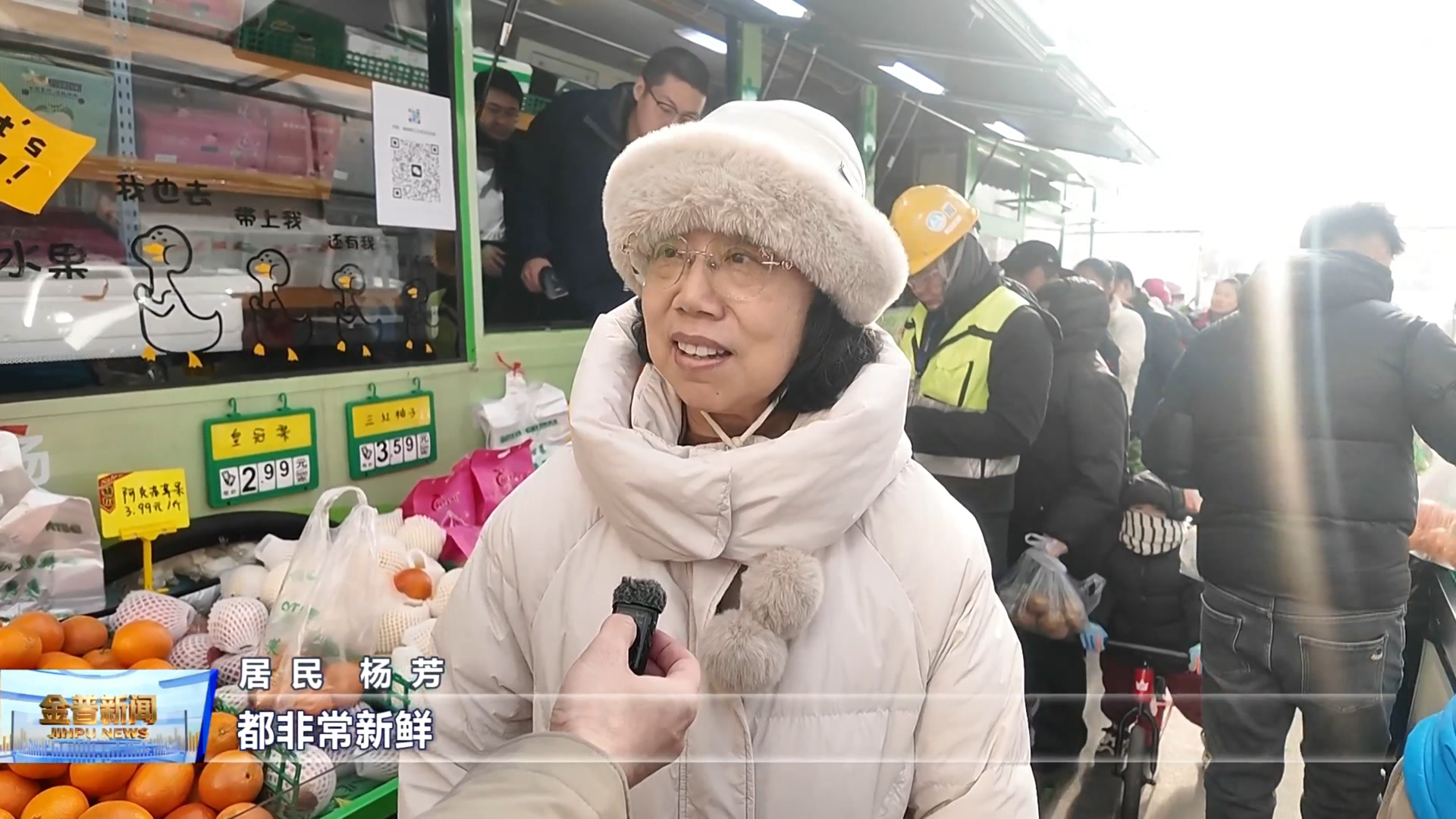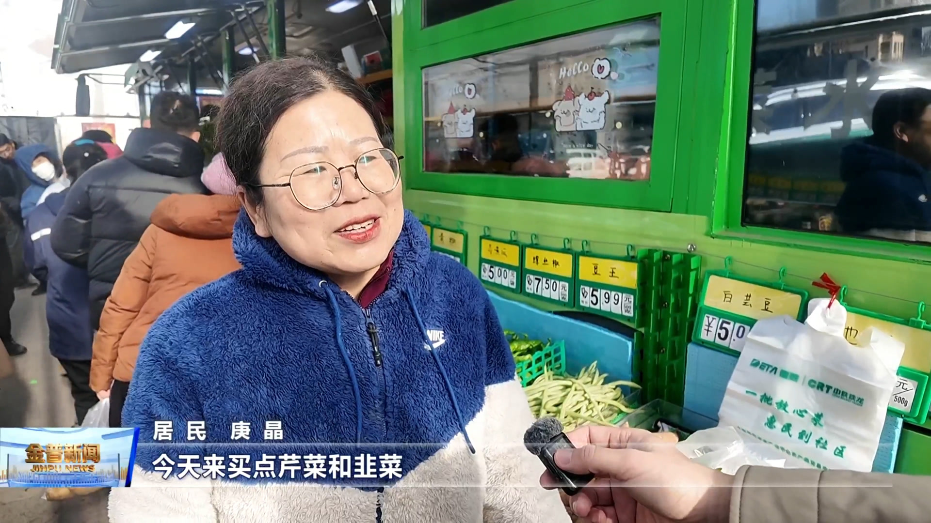居民杨芳(菜价特别惠民,都是平价的,都非常新鲜,所以乐意来这买菜。)