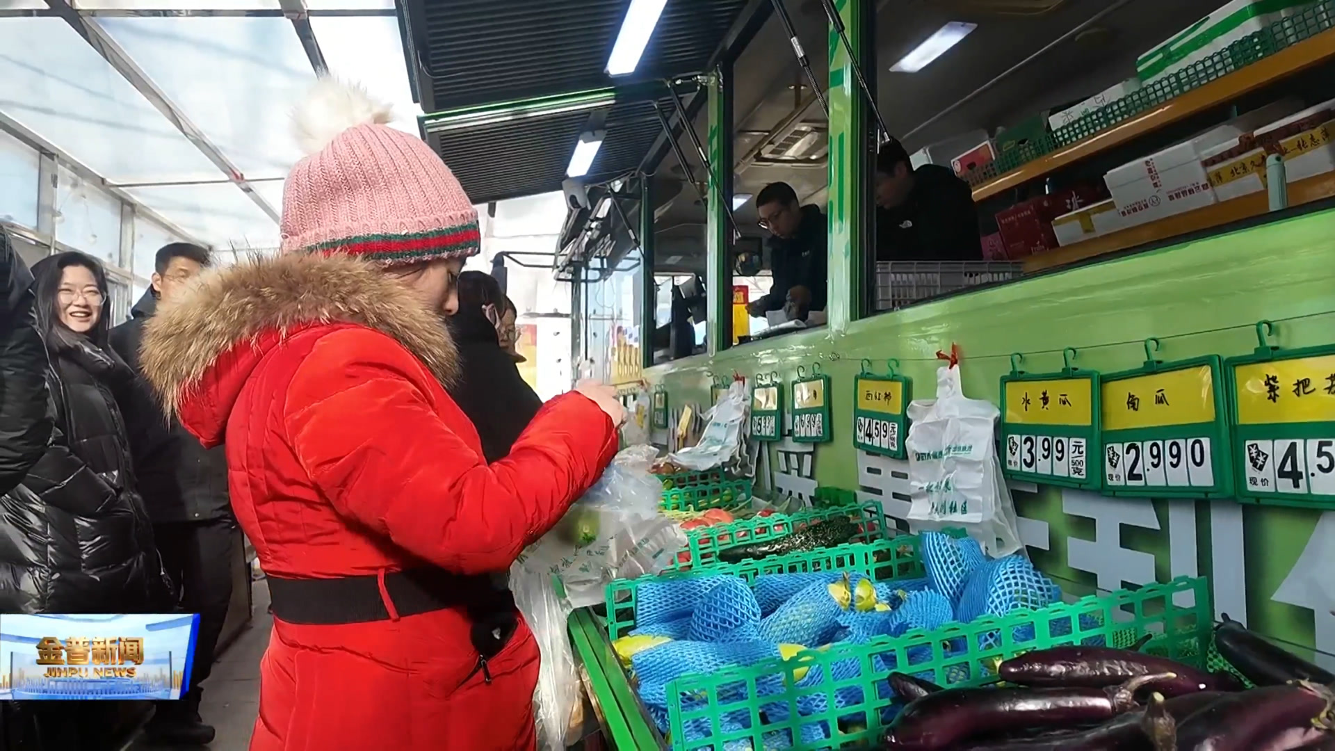 在“公交菜店”里,五六十种蔬菜水果摆放整齐,既有白菜、大葱、茼蒿、土豆等蔬菜,也有香蕉、蓝莓、草莓、橙子等新鲜水果。它们全部来自大连现代农业产业中心一批市场直供的平价果蔬,由于减少了中间环节,实现了“菜园子”直通“菜篮子”,不仅价格亲民,还离家近,前来选购的居民络绎不绝。