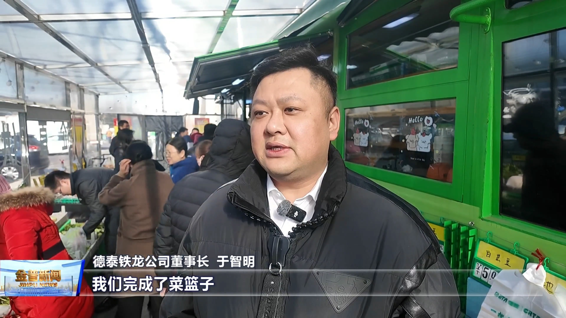 德泰铁龙公司董事长于智明(2025年在大连市委市政府、新区党工委管委会的要求和指导之下,我们完成了菜篮子保障工作其中的两个要点,一个是筹建大连的一批市场,再就是布设这种靠近百姓生活的惠民的生鲜便利店。)