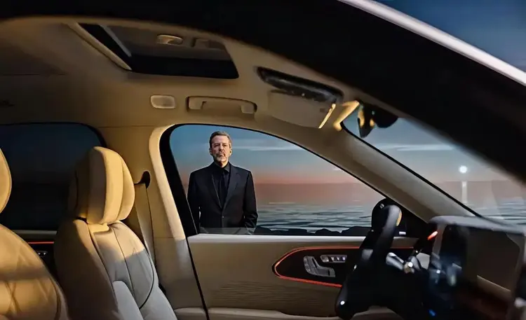 车身侧面是新车与极氪9X的核心差异点:溜背车顶从B柱缓缓下沉,搭配1998mm同级较宽车身与外扩式轮眉,营造“宽体低趴”的跨界轿跑姿态;传统机械式门把手与无框车门组合,配合双层夹胶隔音玻璃,在运动感中兼顾静谧性;车顶标配激光雷达,为高阶智驾系统提供硬件基础,同时可选装行李架、电动踏板,满足多场景使用需求。