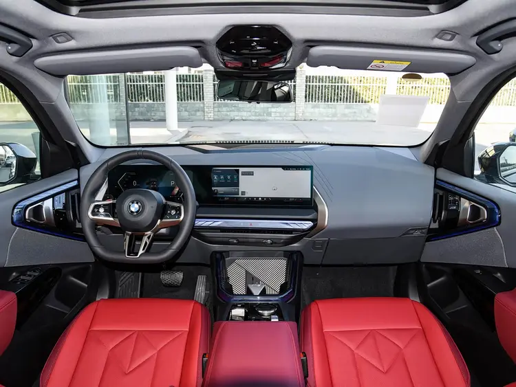 进入车内,内饰采用环抱式座舱设计,M运动曜夜版配备平底真皮方向盘,触感细腻且运动感十足。核心交互区域为12.3英寸全液晶仪表+14.9英寸中控屏组成的双联屏,内置第九代iDrive系统,支持四音区语音控制,操作流畅无卡顿。全系标配哈曼卡顿12扬声器音响、多色主动式氛围灯及全景星轨天幕,豪华配置拉满。2975mm长轴距转化为充裕后排空间,腿部空间超1米,膝部空间较标轴版增加近2倍,185cm乘客乘坐也能舒展双腿。前排座椅标配8向电动调节与加热功能,主驾带记忆功能。