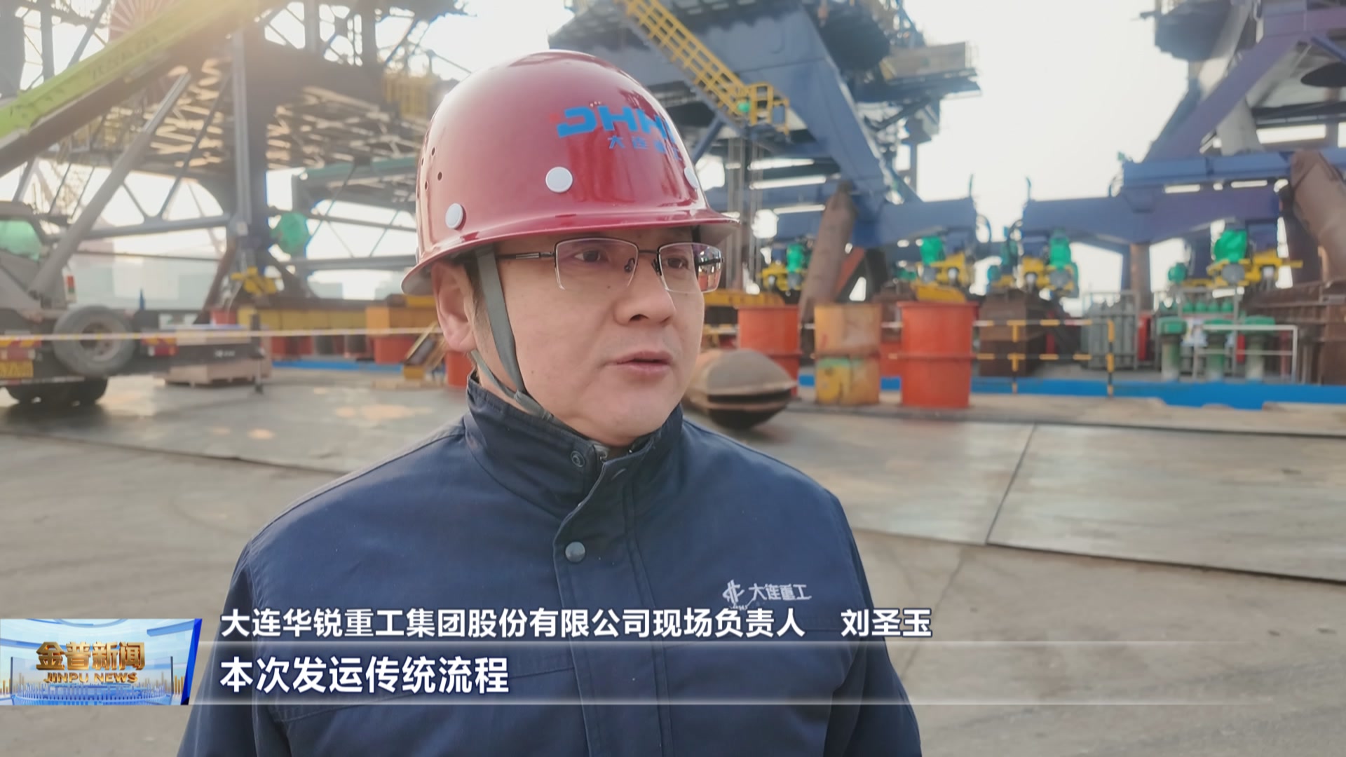 大连华锐重工集团股份有限公司现场负责人刘圣玉(传统流程要经过3次装卸,得20天左右,这次8天就完成了装船,不仅省了30多万元成本,还规避了裸件倒运的质量安全风险。)