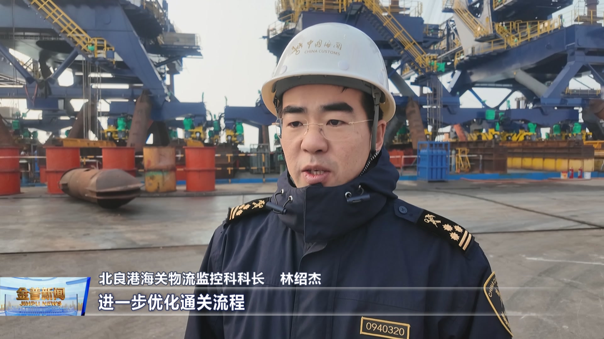 北良港海关物流监控科科长林绍杰(今年将持续推行“一项一案”定制化监管,进一步优化通关流程,助力更多国产装备加速“出海”,为共建“一带一路”贡献海关力量。)