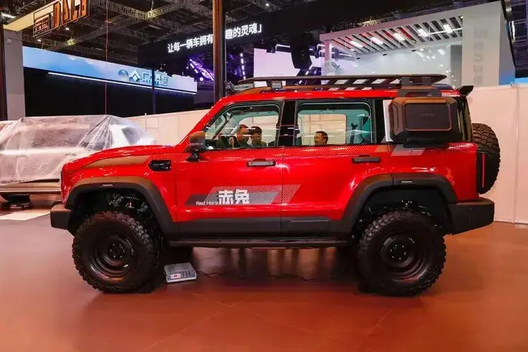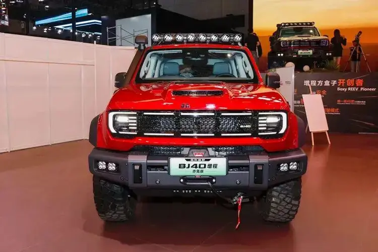 这“赤兔版”第一眼,就不是善茬。它基于普通版打造,但浑身散发着“别惹我”的气场。火焰红的专属车漆配上霸气的拉花,活脱脱一匹战场上的烈马。前后加固的保险杠、内置的绞盘、高位的涉水喉,还有车顶那一排探照灯和扩展行李架,这些都不是样子货,而是实打实的越野利器。