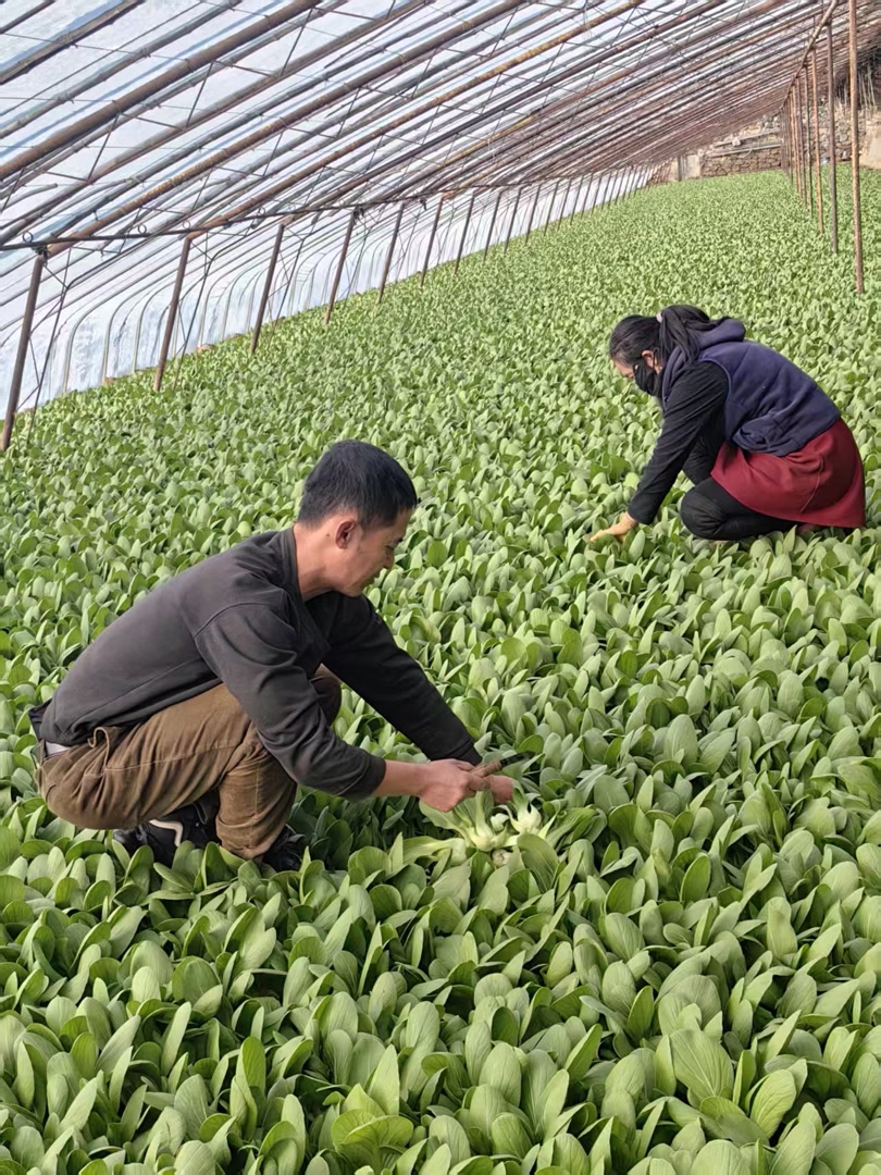 温室是冬季蔬菜生产的主要方式之一。日前,笔者走进刘航的温室,映入眼帘的是一片嫩绿,已经成熟待收以及还在生长的油菜菜畦排列整齐、郁郁葱葱。刘航夫妇在23℃的室温下忙个不停,时不时擦一把脸上的汗水。据刘航介绍,他家经营2栋共3亩地的蔬菜温室,全部生产速生叶菜,一年可种植8-10茬,总产量超过100吨。冬季气温低,主要生产耐寒性强的油菜,其他季节可以种植茼蒿、苦苣、菠菜、小白菜等品种的叶菜。“冬季生产一茬菜需要40多天,其他季节只需要30天。上茬菜采收完就得整地、移苗开始生产下茬菜,春节期间是温室生产的旺季,市场对新鲜蔬菜需求量大,行情也好,要保证春节期间按期上市,就要提前算好‘茬口’,适时播种,更要精心侍弄。”刘航介绍说,进入腊月,他家每天蔬菜上市量达500-600斤,“小年”以后,每天上市量都在1000斤以上。他经营蔬菜温室生产已有18年了,与很多商家都建立了长期稳定的蔬菜产销对接关系,并不担心销路问题。