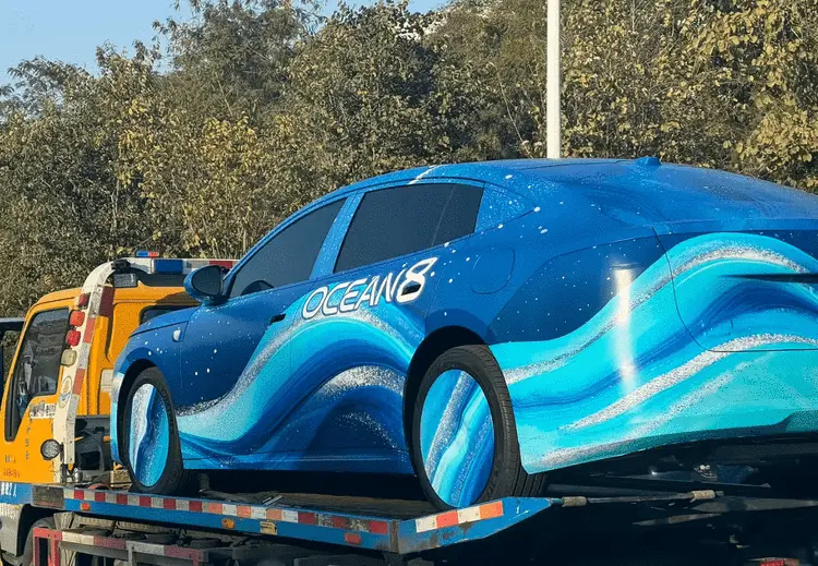 从谍照来看,海狮08和海豹08在转向状态下,后轮有明显的偏转角度,这也意味着新车均配备了后轮转向功能,这也使其在有限的空间内,降低转弯半径,行驶表现更灵活。