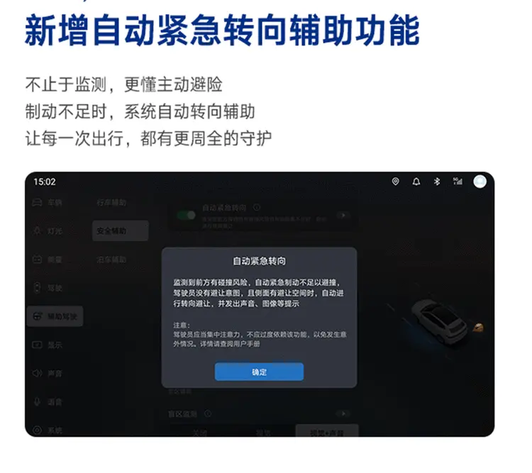 在出行场景中,如果是长途出行,驾驶者长时间面对单一的高速路况,极易视觉疲劳与注意力分散,存在极大的安全风险。针对此痛点,腾势N9在升级天神之眼 5.0之后,新增高快道路环境下紧急靠边停车辅助功能,系统在高速或快速路领航过程中,如多次提醒后仍检测到驾驶员未手握方向盘,将主动安全介入,平顺减速至停车,开启警示灯并解锁车门,有效预防潜在风险。与此同时,腾势N9在本次OTA升级中,进一步强化了主动安全能力,新增紧急转向辅助与自动紧急转向辅助功能,可智能识别潜在碰撞风险并主动介入转向控制,有效降低事故发生概率。