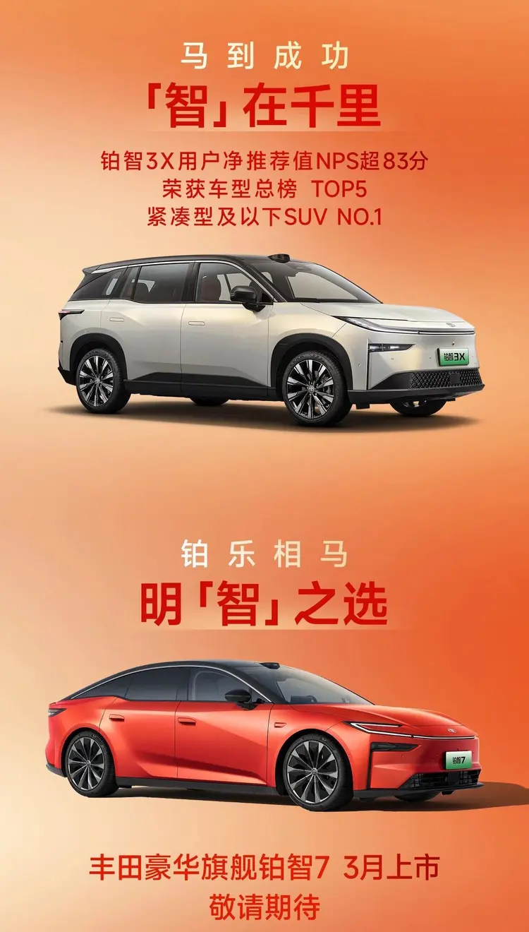 面对车市存量竞争,广汽丰田坚持“油电同强”策略:燃油车通过智能化升级(如全系标配高通8155芯片、TSS智驾系统)维持竞争力,双擎车型占比超40%,稳居国内HEV市场榜首;新能源则依托铂智系列突围,铂智3X累计销量突破7万辆,成为合资纯电销冠,并首创“电池衰减、自燃、智驾事故三担责”政策强化用户信任。