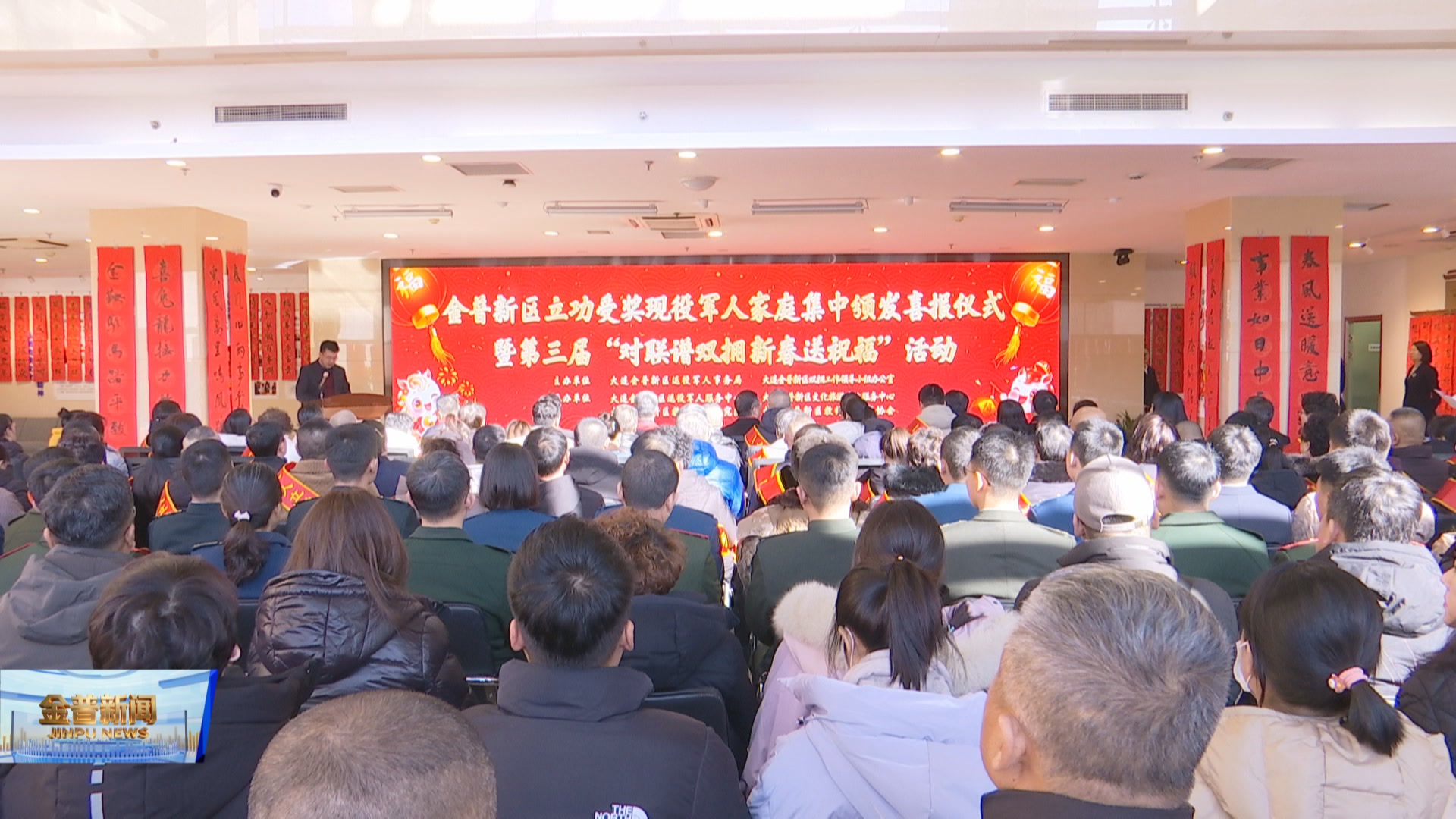 1月29日,金普新区举行立功受奖现役军人家庭集中颁喜报仪式,并同时启动第三届“对联谱双拥 新春送祝福”双拥文化活动,把尊崇与祝福送到军属心坎上,让双拥传统在新春氛围里更有温度。