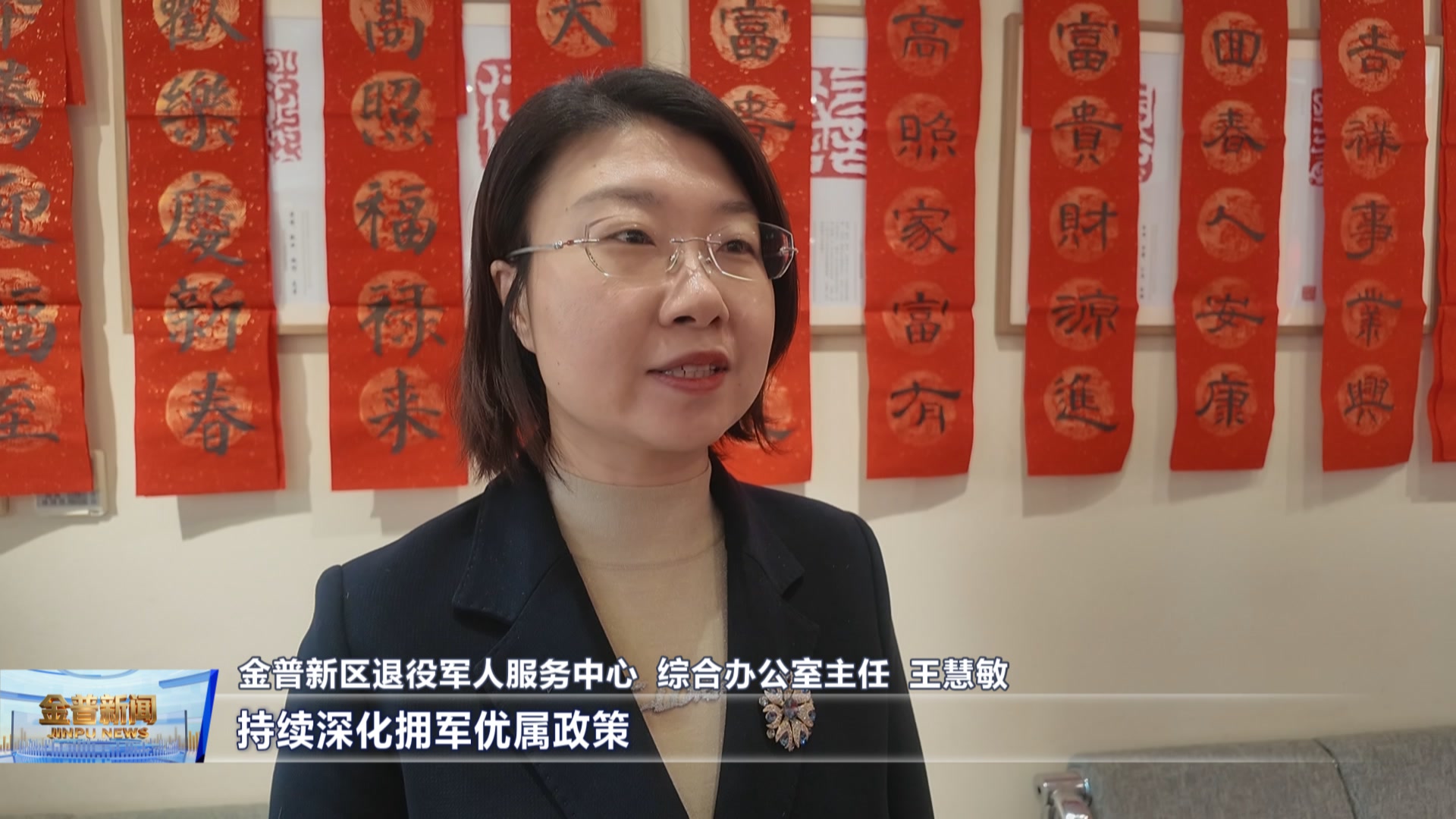 金普新区退役军人服务中心综合办公室主任王慧敏(我们退役军人事务局将持续深化拥军优属政策,不断拓展服务内容,优化服务方式,致力于为军人军属和退役军人排忧解难,努力营造全社会尊崇军人,关爱军属的良好氛围,让广大官兵能够更加安心专注的戎守边疆,为保卫国家安全贡献力量。)