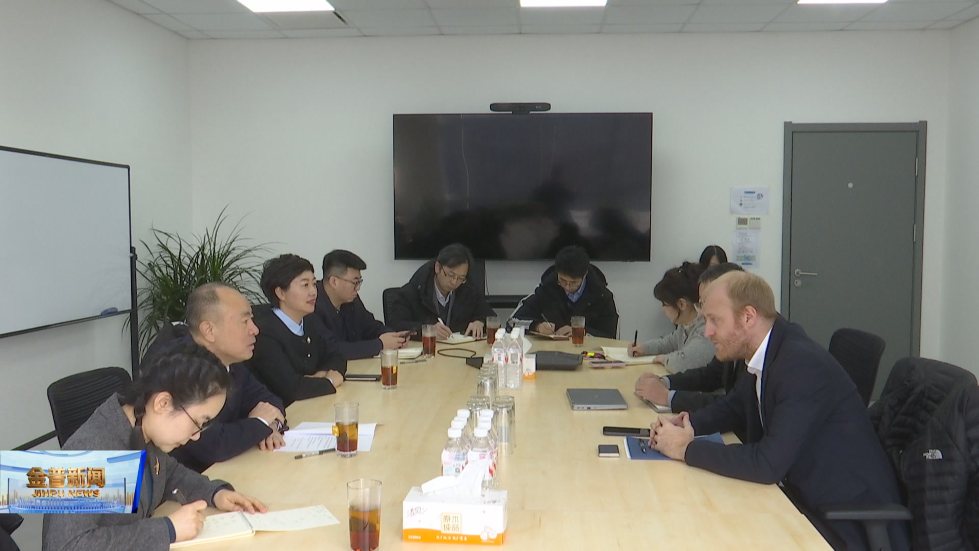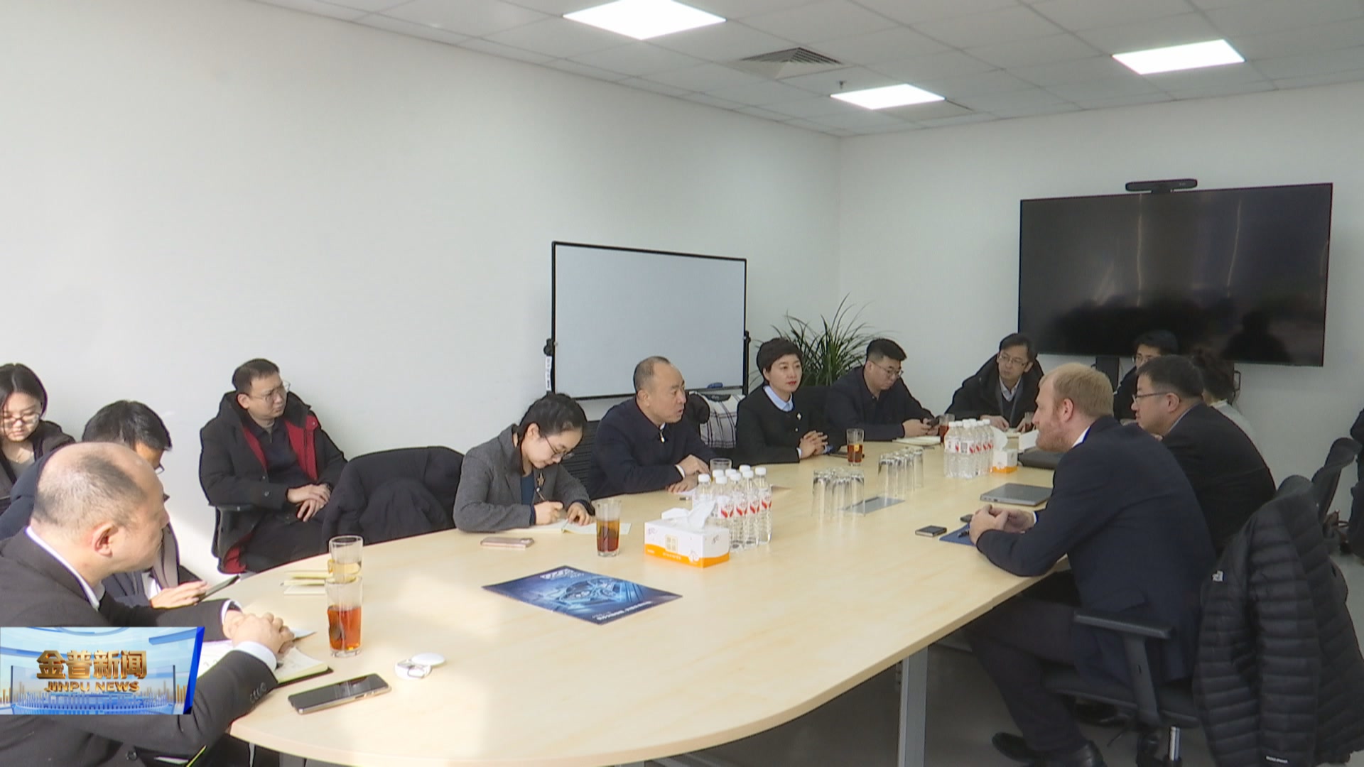 在企业会议室,冷雪峰主持召开座谈会,倾听企业情况介绍,了解企业发展过程中面临的困难与诉求,并就优化营商环境、双方加强合作交换意见。