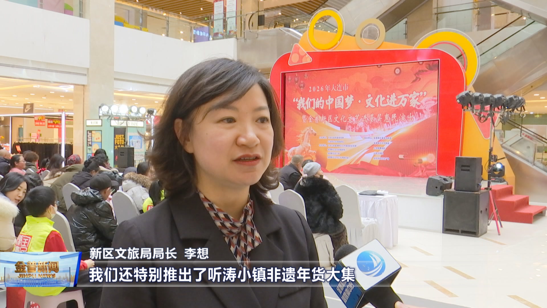 新区文旅局局长李想(我们还特别推出了听涛小镇非遗年货大集,叫响跟着美食非遗游金普这个品牌,与核心商圈联动,笔墨迎春,翰墨飘香,传递浓厚的年味。)