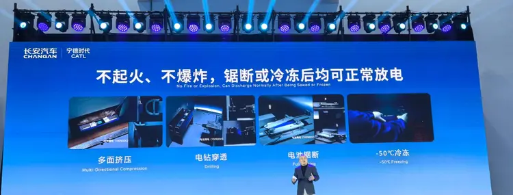 钠电池还有着200℃以上的热失控起火温度,而磷酸铁锂和三元锂电池的热失控起始温度大约为125℃和80℃。此次宁德时代带来的钠电池还进行了满电电芯的扭曲、针刺等极端试验,做到了不起火、不爆炸的成绩,甚至还能在试验后正常供电。可靠性十分出色。