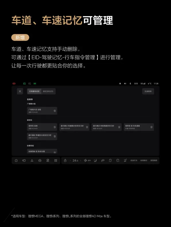 交互方面,VLA司机大模型支持语音保存车位,用户可以下达语音指令:“记住这个车位是电梯口车位”,对特定车位进行收藏保存。新增倒车后向障碍物语音提醒功能,在驾驶员手动倒车时,车辆通过后视摄像头检测潜在碰撞的障碍物,并在车内通过理想同学进行播报提示。此外,OTA8.3还新增传感器脏污情况交互提醒,以及车速、车道记忆管理页面等功能,大幅提升用户用车便捷性。