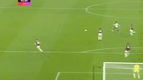 第50分钟,西汉姆联大脚传球,卢克肖防守出现问题,鲍文下底传中,绍切克插上抢点破门。