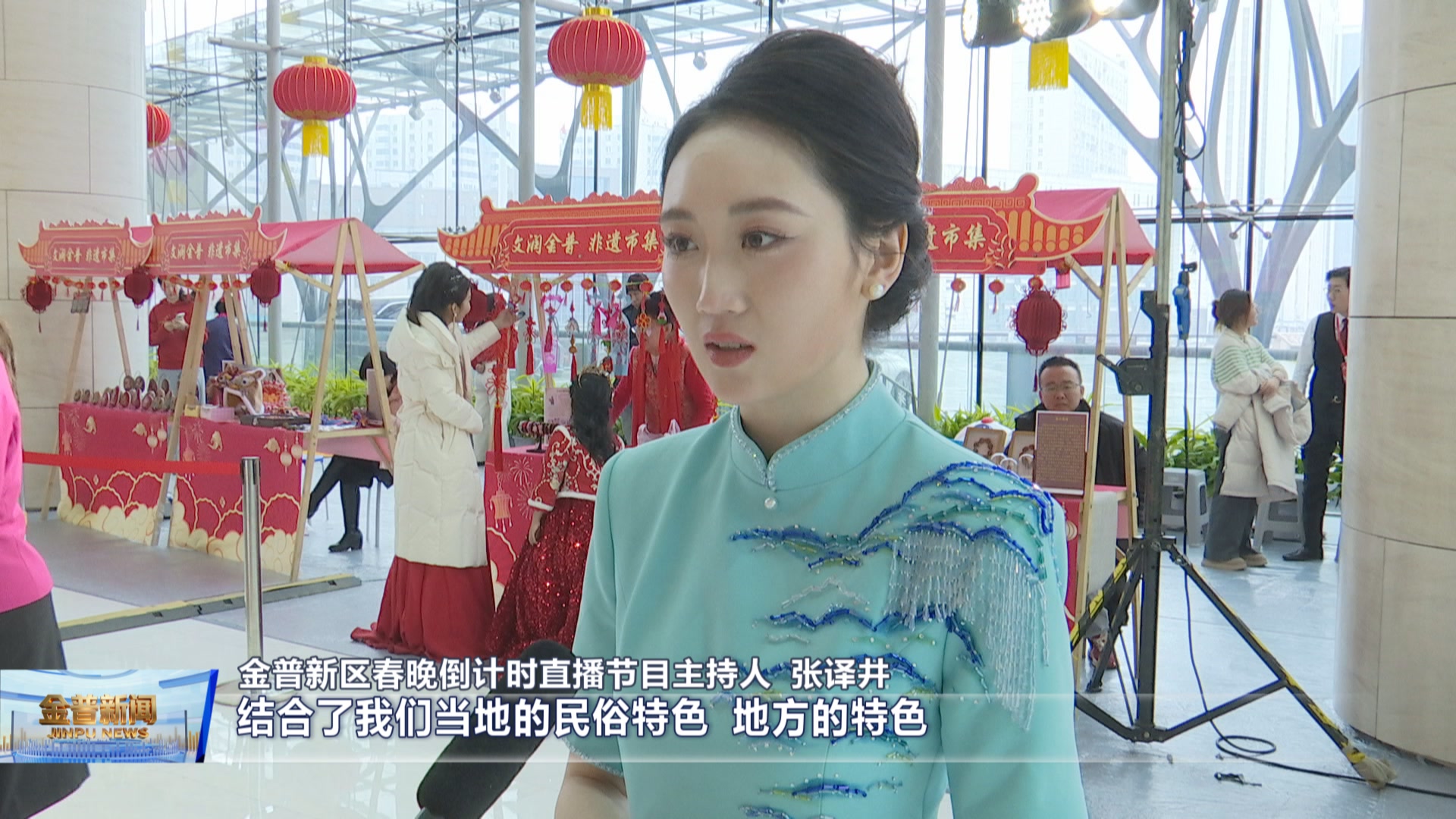 金普新区春晚倒计时直播节目主持人张译井(把非遗融入到我们整个舞台的元素当中,比如说请到像益昌凝糕点,然后面塑、花馍等,在舞台上呈现给观众和歌舞进行了很好的融合。结合了我们当地的民俗特色、地方的特色,也结合了这一整年我们(金普)的变化和一些新的热点,来集合成这一台晚会。)