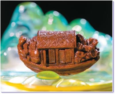 2000年,韩志耀用大半年时间泡在图书馆查阅资料,钻研明代船舶、服饰细节,最终成功复现了明代《核舟记》中记载的桃核舟。在此基础上,韩志耀进一步创作,将《核舟记》中记载的8扇窗全部进行镂空处理,把诗文镌刻在船背上,还在舱内增设了吹箫人、书童、客人等角色,人物总数达9人。作品中那枚3毫米的小茶壶更是精妙绝伦,壶盖可灵活开启,壶心中空,壶嘴亦与壶腹相通。此后,韩志耀并未止步,又先后创作出《花舫》《扬帆》等核舟作品,刻画的人物多至21人,有吹箫的、弹琴的、品茶的、挥毫泼墨的,窗户也由《核舟记》中的8扇增加为24扇。