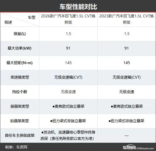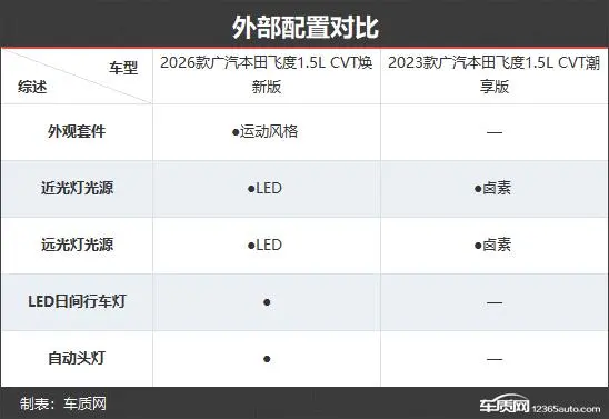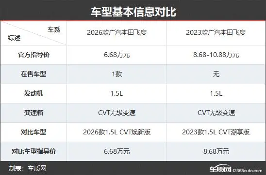 2026款广汽本田飞度仅提供1款车型,车型数量与2023款相比进行了精简。本次对比选择了老款入门车型进行对比,看看这款小型车是不是带着满满的诚意而来。