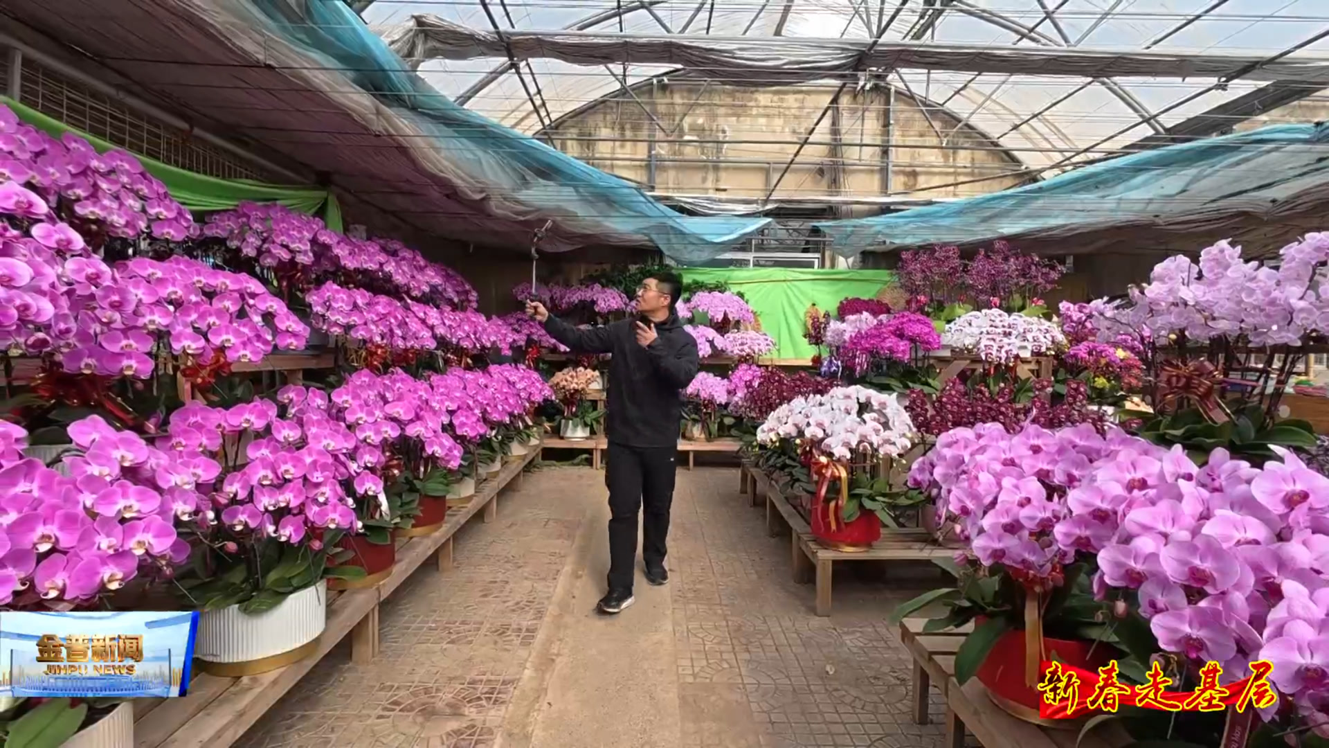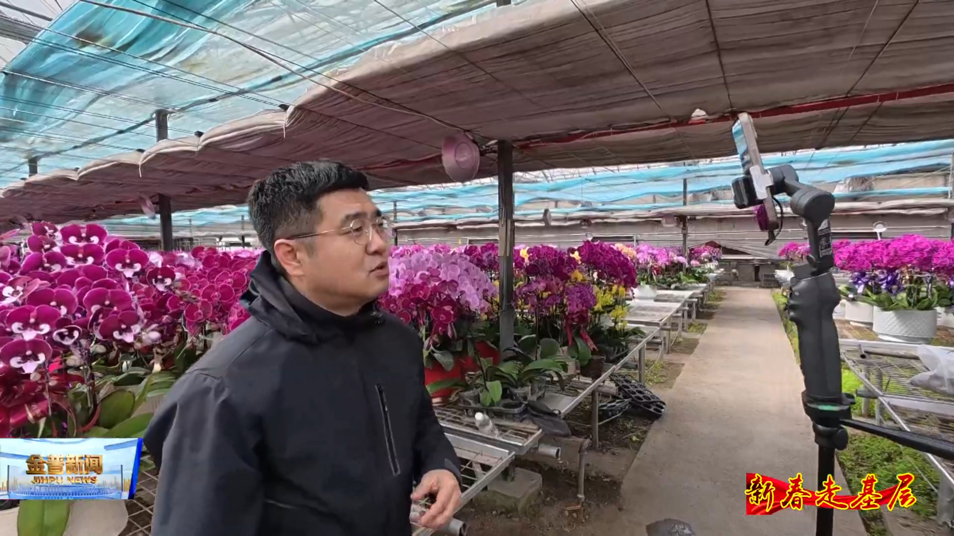 向应街道城西村驻村第一书记柯景彬 (像我们村这个菊兰园是东北地区最早的蝴蝶兰培育基地,有上百个品种。它是我们整个花房最贵的品种啊,就这一款幻影,还有一款.....)