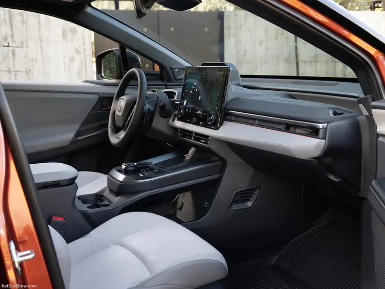 标配双电机,功率达到338马力、0-60英里加速为5秒,但仍是主前驱设计。搭载容量74.7度的锂电池,官方续航数据为290英里,快充从10%到80%用时约 30 分钟,而慢充支持11kW。